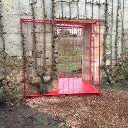 Un cube en structure acier et sangles extensibles est incrit dans l’encadrement des portes de part et d’autre du troisième carré des onzes. Les visiteurs sont invités à traverser cette structure en jouant avec les câbles extensibles qui composent un espace clos. Ce passage devient une expérience physique inédite où les visiteurs deviennent acteurs. Positionnés de biais, les cubes créent une impression d’instabilité et donc de dissonance dans ce paysage, tout en respectant la trame originale dessinée par Jean-Baptistela Quintinie (créateur du Potager du Roi).